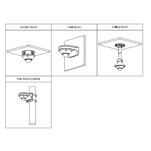 Fisheye camera with 360° coverage; ideal for lobbies/large halls.